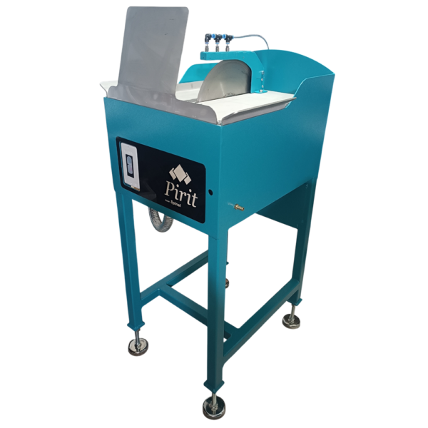 “Spinel” 14inç (350mm) Çapında Testere ile Orta Büyüklükteki Taşların Kesimini Yapabilen ve Üzerinde Birçok Buluş ve Yeniliği Barındıran Bir Kesim Makinesidir. Pirit® Mühendisleri Tarafından Tasarlanan ve Tescillenen Buluşlar Sayesinde En Kolay Temizlenen Makinelerden Arasında Zirve Sayılabilecek Kolaylıklara Sahiptir. Temizlik İçin Tabla Sökme İhtiyacı Çok Azdır. Güçlü Motoru ve Yüksek Kesim Mesafesi ile Mengene Bağlama Zorluklarına Katlanmadan Dilediğiniz Yerden Kesim Yapma Kolaylığı Bulunur. Paslanmaz Çelikten İmal Edilmiş Tablası Uzun Yıllar Hizmet Edecek Şekilde Tasarlanmıştır. Endüstriyel Tasarımı ile Ağır Hizmet Koşullarını Tam Olarak Karşılar. Hatasız Üretilen Özel Tasarlanmış Paslanmaz Çelik Testere Şaftı, En İyi Kalite Rulmanlar ve Pirit® Rulman Koruma Sistemi Sayesinde En Uzun Sürede Bakım İhtiyacı Gerektirecek Şekilde Tasanmış ve Üretilmiştir. Sıkışma Durumlarına Karşı Motor Akım Koruması Mevcuttur. Hem Alttan Sıvı Hem de Üstten Sıvı Takviyesi ile Kesime Uygun Tasarlanmıştır ve Pirit® Sıvı Seviye Sabitleme Sistemi Seviye Sabitlenmiştir.